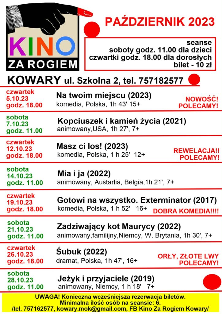 1 października 2023 - Aktualności, Dla dzieci, Kino za Rogiem, kowary.pl