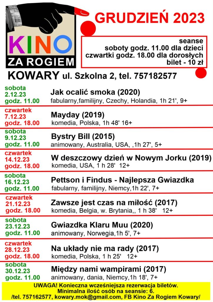 1 grudnia 2023 - Aktualności, Dla dzieci, Kino za Rogiem, kowary.pl