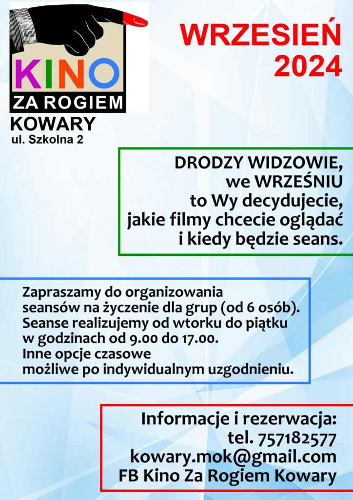 We wrześniu – jak w wakacje. Wybierajcie filmy i przychodźcie. Zapraszamy