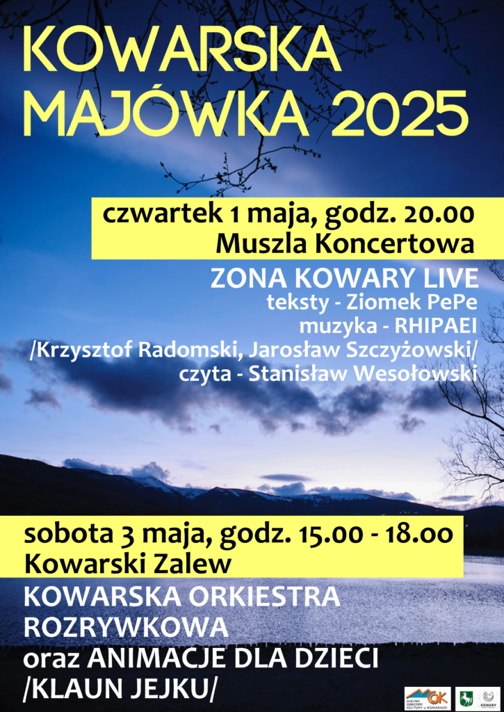 Trzeciego maja zapraszamy nad Kowarski Zalew. Od godziny 15.00 zagra dla Was Kowarska Orkiestra Rozrywkowa, a zabawy dla najmłodszych poprowadzi Klaun Jejku.
