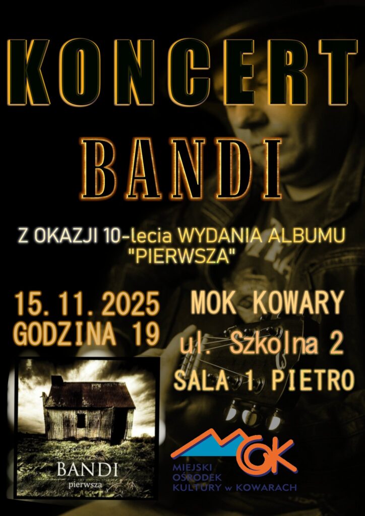 15 listopada 2025 , godz. 19.00 – Koncert zespołu BANDI w składzie: Piort Pawelec, Łukasz Schmidt, Marcin Maksymiec oraz zaproszeni goście. Wydarzenie podczas, którego muzycy zaprezentują autorską muzykę w aranżacjach na instrumenty akustyczne. Będzie można usłyszeć utwory z wydanego w 2015 roku albumu: „PIERWSZA” jak również z drugiego krążka zespołu, który nosi tytuł: „PIOTRUŚ PAN”